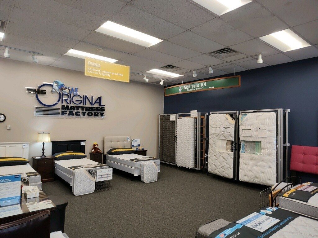 The Original Mattress Factory offers high-quality mattresses at a factory-direct price. Our mattresses and box springs are hand-built at our local factory and sold directly to you in our stores. That means you can get a better mattress at a better price compared to mainstream mattress brands. We provide a no-pressure mattress shopping experience. We offer two-sided, flippable mattresses made with the highest-quality materials. Our mattresses pair with our real, flexing box springs that act as a shock absorber for the mattress, improving long-term comfort and durability. We also offer custom mattresses in unique sizes for RVs, campers, boats, antique beds, and more. The Original Mattress Factory is an employee-owned company.